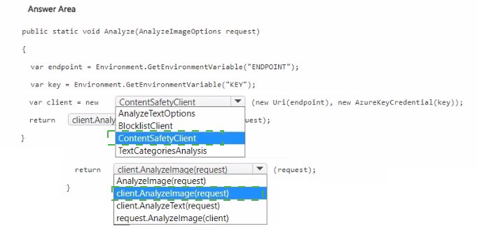 Microsoft Learn: "Azure AI Content Safety – Image moderation" – Use ContentSafetyClient.AnalyzeImage.