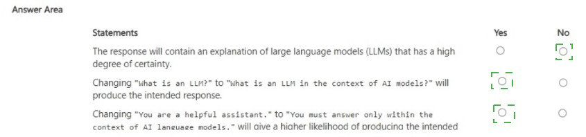 For each of the following statements, select Yes if the statement is true. Otherwise, select