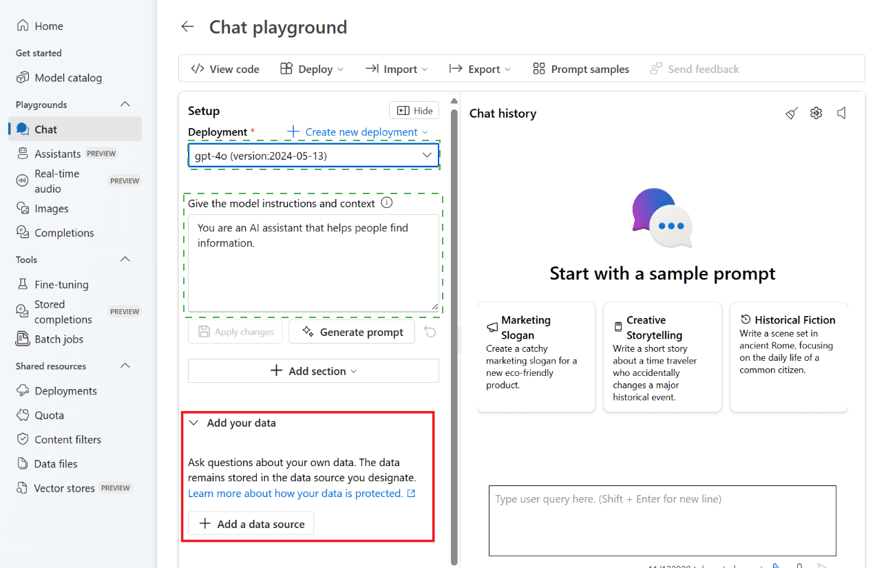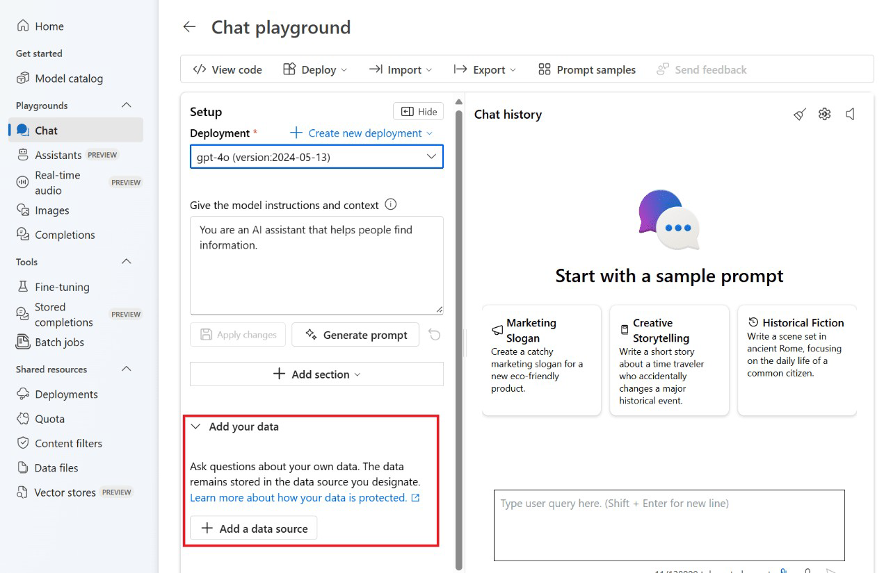 You are building a chatbot by using Chat playground in Azure Al Studio.
