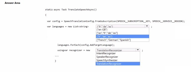 You are building an app that will automatically translate speech from English to French, German, and Spanish by using Azure Al service.
