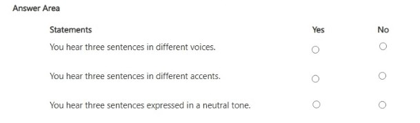Statement 2: You hear three sentences in different accents.
