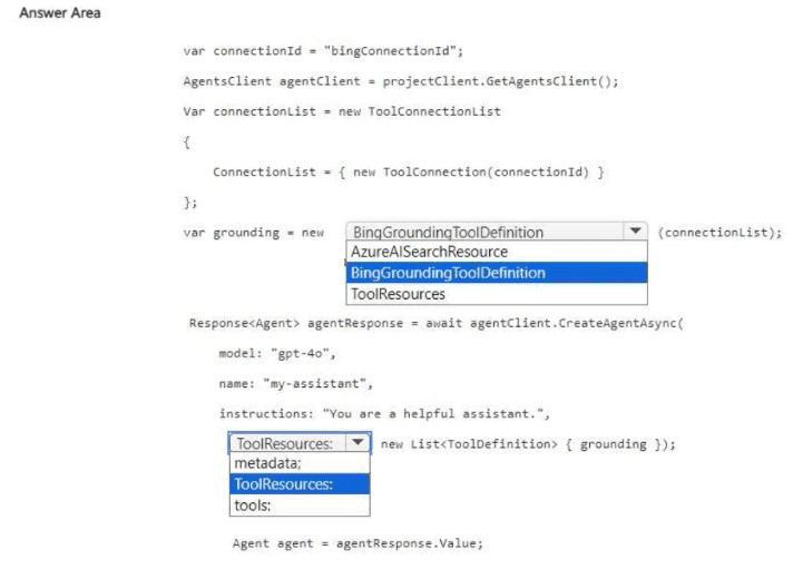 First blank (after var grounding = new): BingGroundingToolDefinition