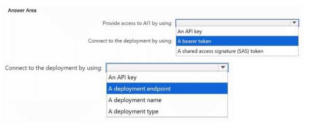 What should you use to provide access to Al1, and what should each app use to connect to its appropriate deployment? To answer, select the appropriate options in the answer area.