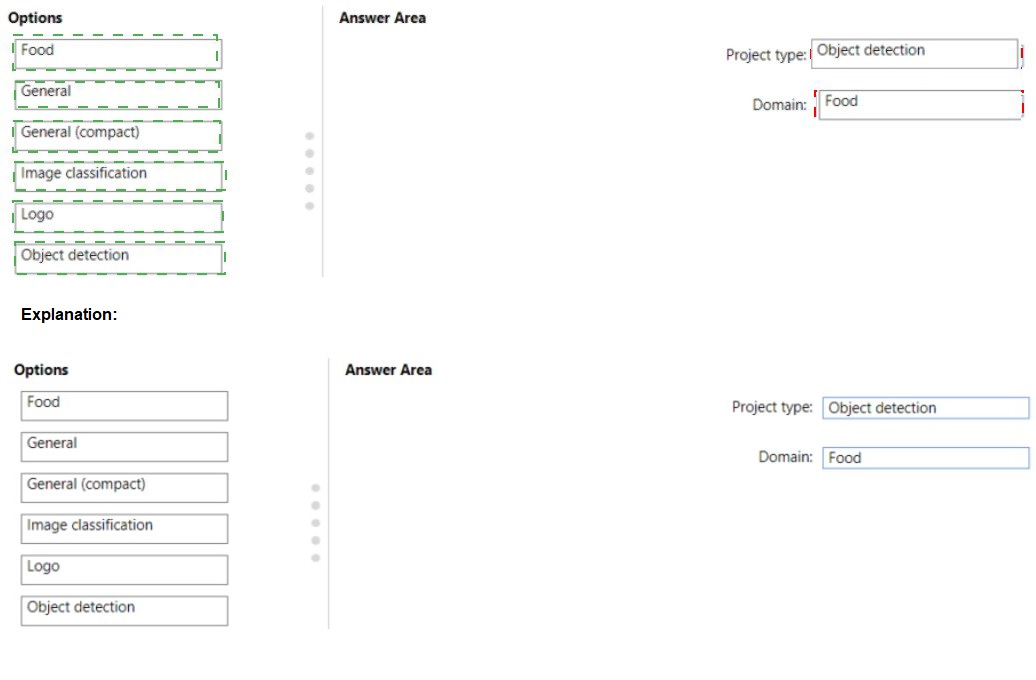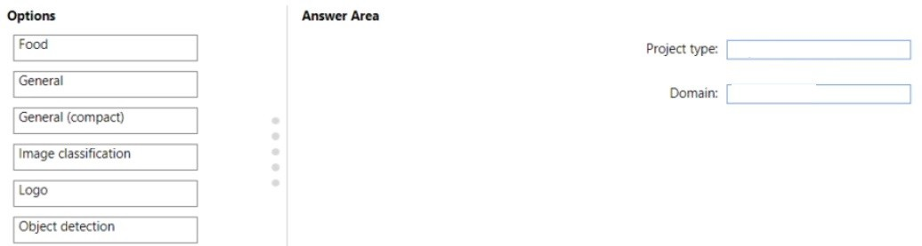 Which project type and domain should you use? To answer, drag the appropriate options to the correct targets. Each option may be used once, more than once, or not at all. You may need to drag the split bar between panes or scroll to view content.