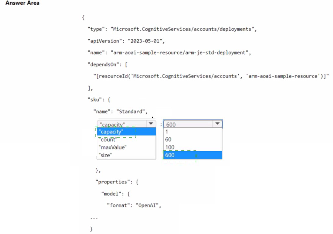 You plan to deploy an Azure OpenAI resource by using an Azure Resource Manager (ARM) template.