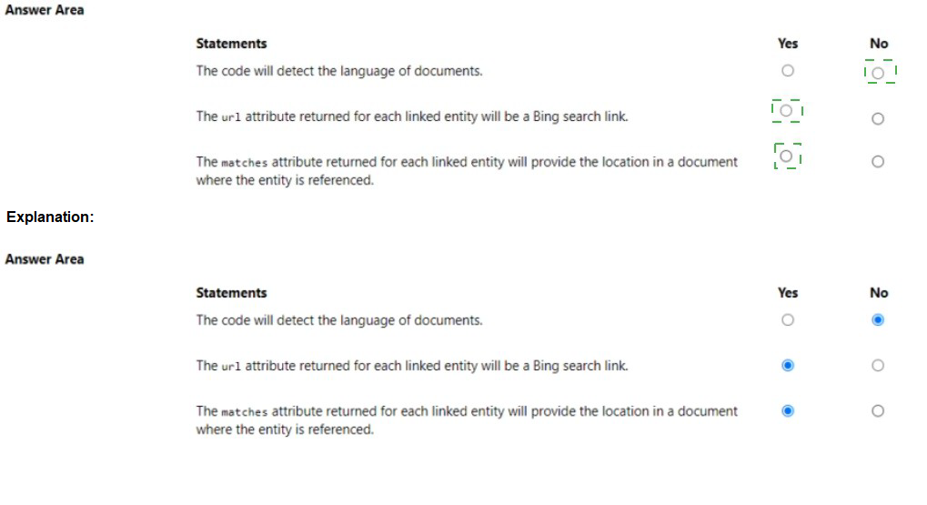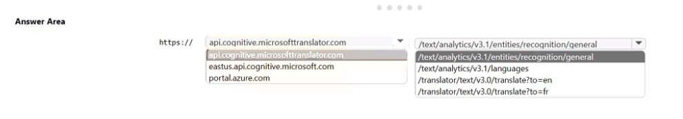 Which Azure Cognitive Services API should you use? To answer, select the appropriate options in the answer area.