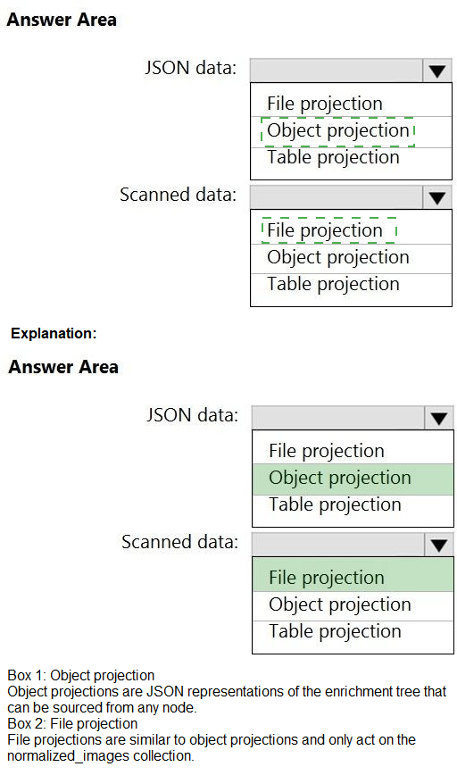 Which projection type should you use for each data type? To answer, select the