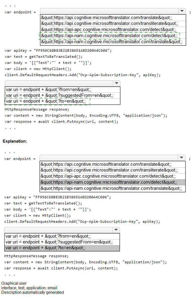 How should you complete the code? To answer, select the appropriate options in the