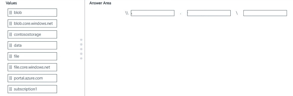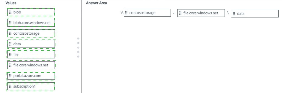 You create an Azure Storage account named contosostorage, and then you create a file