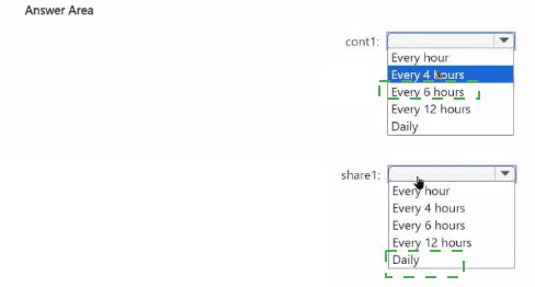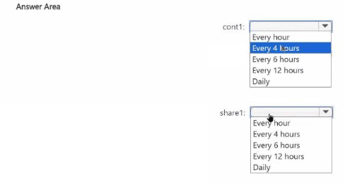 To what should you set the backup frequency for each resource? To answer, select the