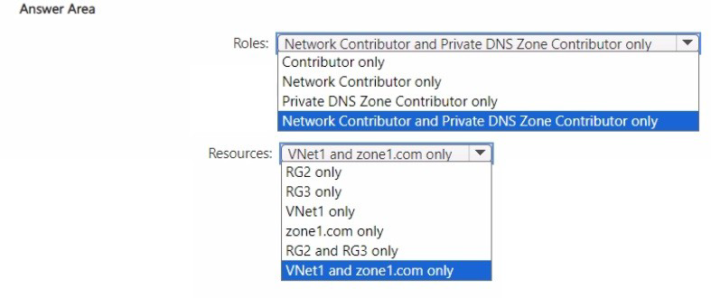 Which roles should you assign to User1, and for which resources? To answer, select the