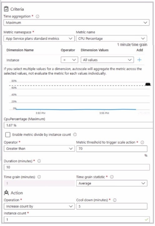 You have an Azure App Service web app named appl. You configure autoscaling as shown