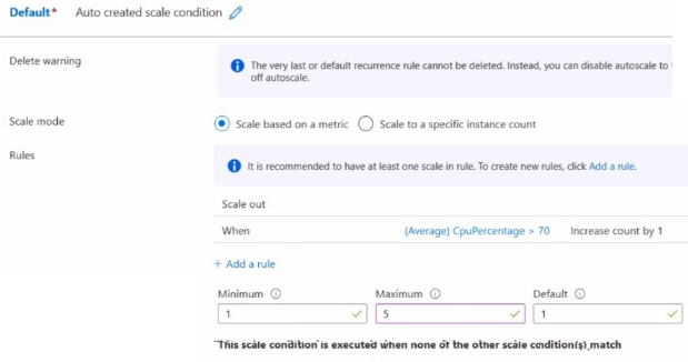 You configure the autoscale rule criteria as shown in the following exhibit.