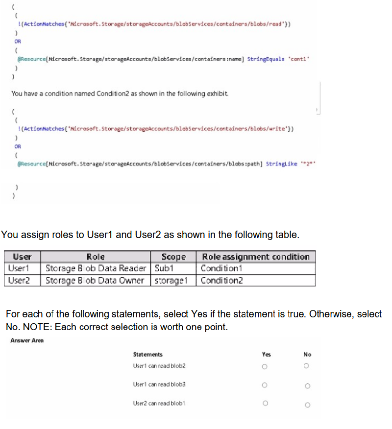 For each of the following statements, select Yes if the statement is true. Otherwise, select