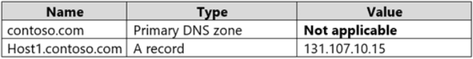 Server1 is a DNS server that contains the resources shown in the following table.