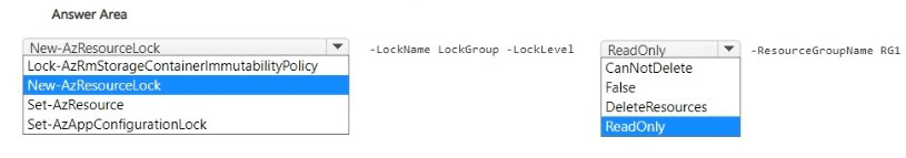 This question tests the use of PowerShell to create an Azure Resource Manager lock. Management locks prevent accidental modification or deletion of resources. A ReadOnly lock prevents all modifications, while a CanNotDelete lock only prevents deletion. The scenario requires preventing administrators from "inadvertently modifying" resources, which calls for the stricter ReadOnly lock.