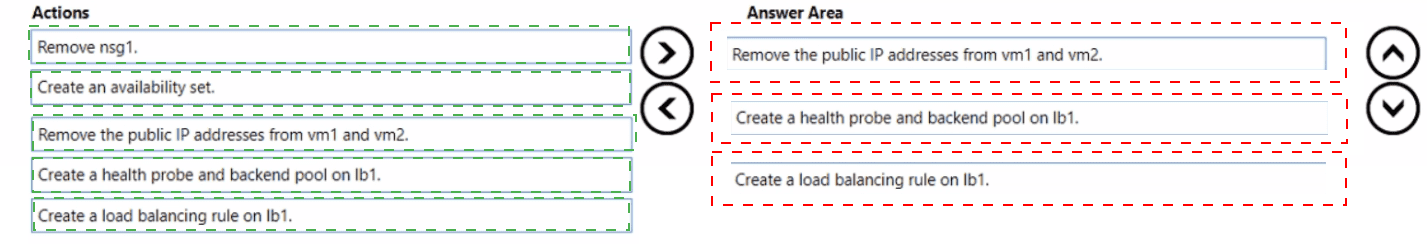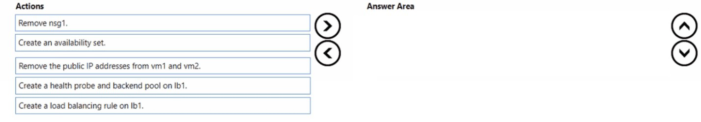 *(The final step, implied to complete the solution but not part of the three you select in sequence, would be: Create a load balancing rule on lb1. This rule ties the frontend IP/port (e.g., FrontendIP:443) to the backend pool and health probe, defining the distribution logic.)*