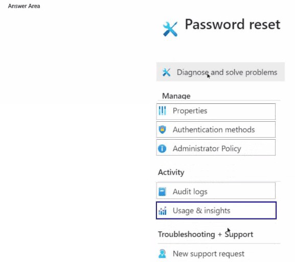 This is the main configuration blade for SSPR in the Azure AD admin center. Selecting this is the first step, as it's where you navigate to enable SSPR for the desired group of users (in this case, "All") and configure its core behavior. You cannot set any SSPR details without first accessing this area.