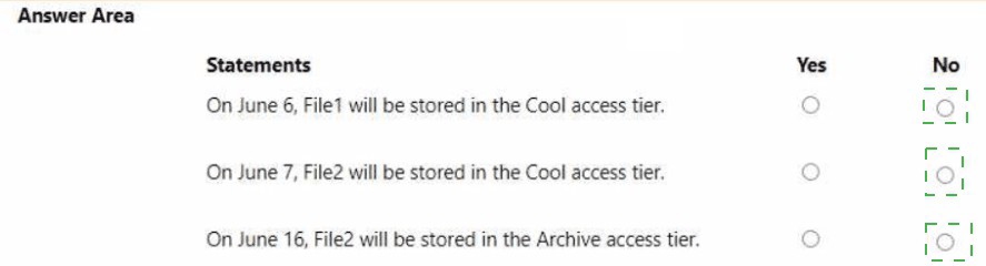 On June 1, you store two blobs in storage1 as shown in the following table.
