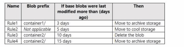 storage1 that has the lifecycle management rules shown in the following table.