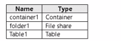 named storage 1. The storage1 account contains the resources shown in the following