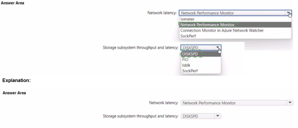 Network Performance Monitor is an older tool being replaced by Connection Monitor. Iometer is primarily a storage benchmarking tool, not designed for network latency measurement between specific endpoints. SocketPerf is less commonly used and lacks the Azure integration and comprehensive monitoring capabilities of Connection Monitor.