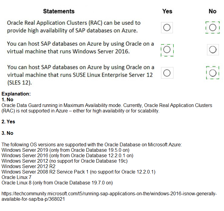 Statement 2: You can host SAP databases on Azure by using Oracle on a virtual machine that runs Windows Server 2016. → Yes