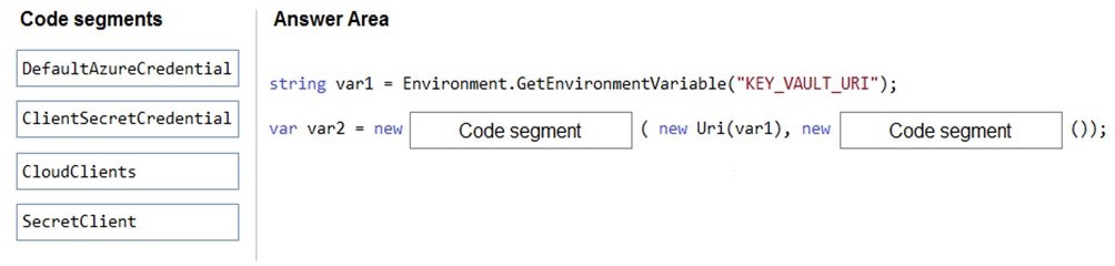 How should you complete the code segment? To answer, drag the appropriate code segments to the correct locations. Each code segment may be used once, more than once, or not at all. You may need to drag the split bar between panes or scroll to view content. NOTE: Each correct selection is worth one point