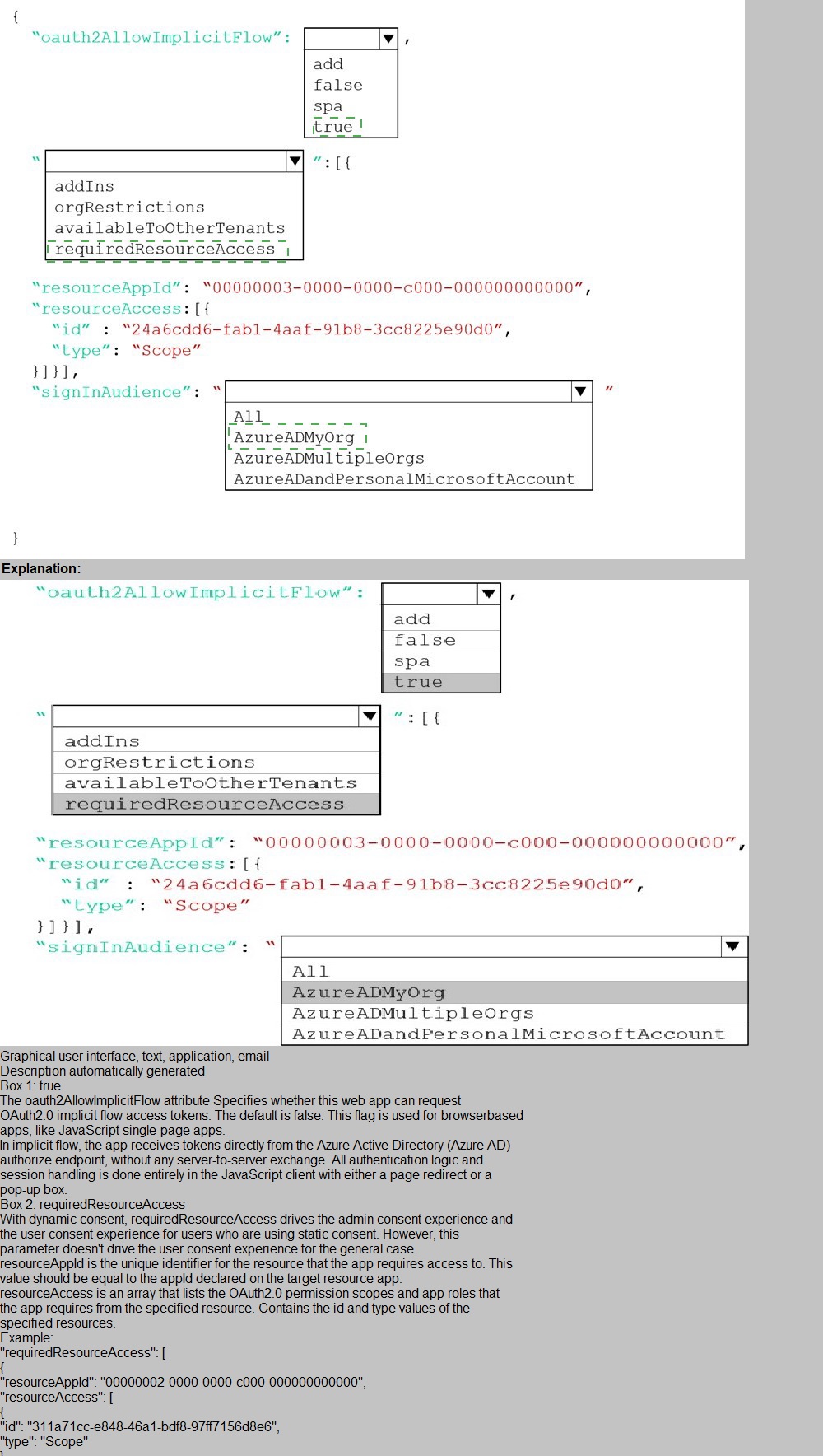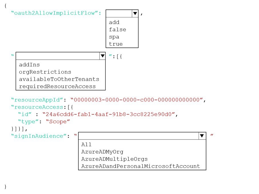 How should you complete the manifest? To answer, select the appropriate options in the answer area.