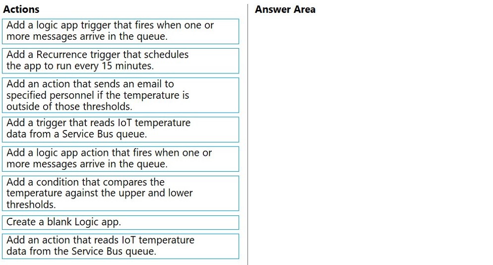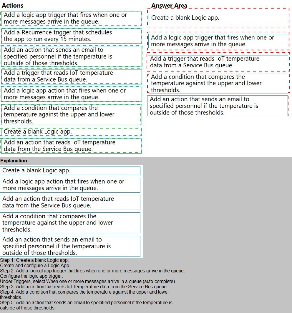 actions from the list of actions to the answer area and arrange them in the correct order.