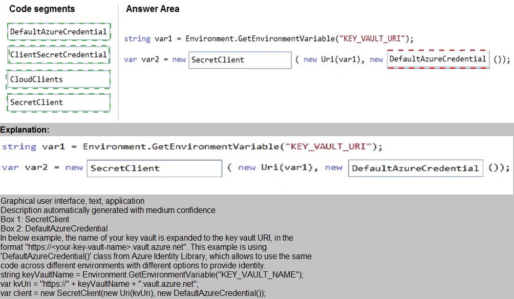 You need to develop code to access a secret stored in Azure Key Vault.