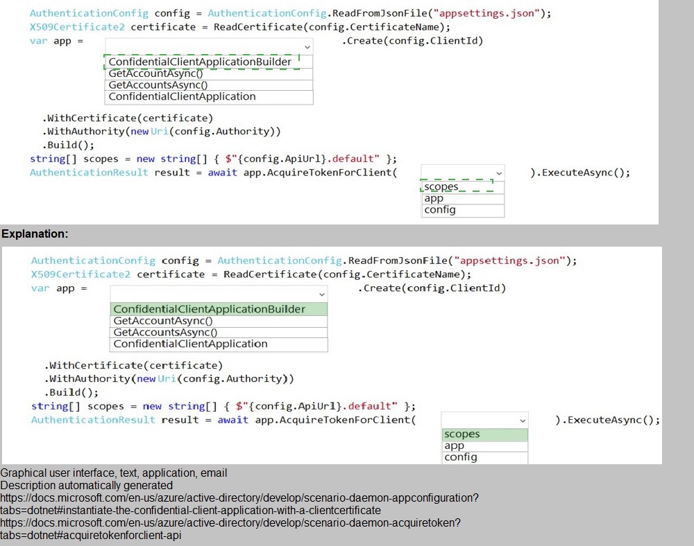 application, and the tenant identifier of the Azure active Directory (Azure AD). You create a