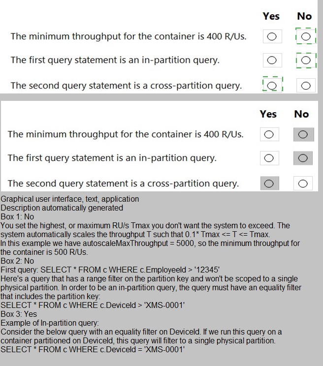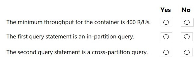 For each of the following statements, select Yes if the statement is true. Otherwise, select