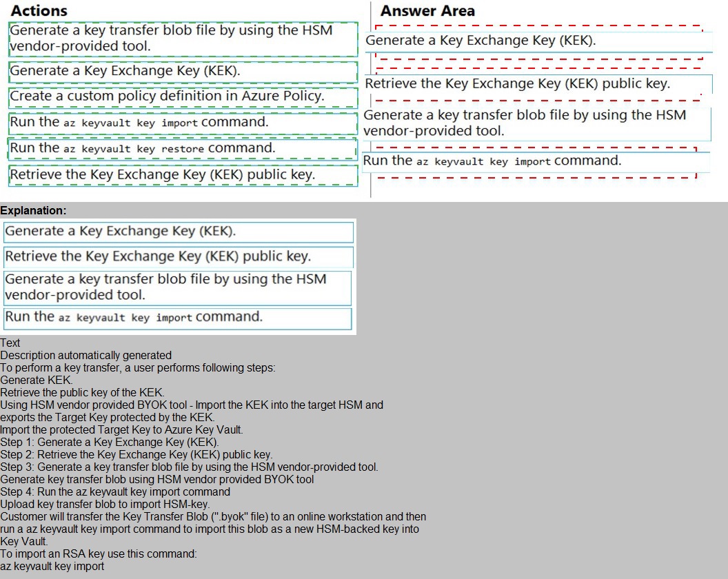 actions from the list of actions to the answer area and arrange them in the correct order.