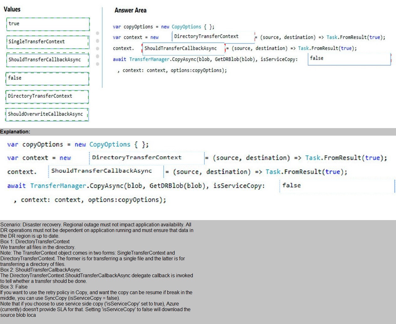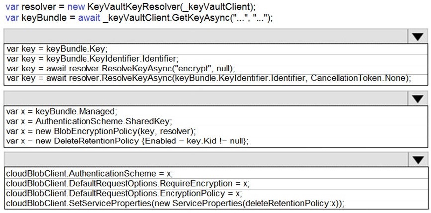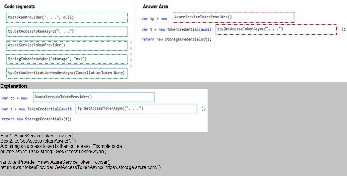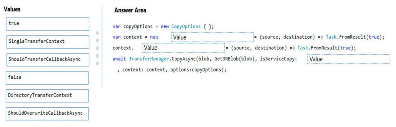 How should you complete the code? To answer, drag the appropriate code segments to