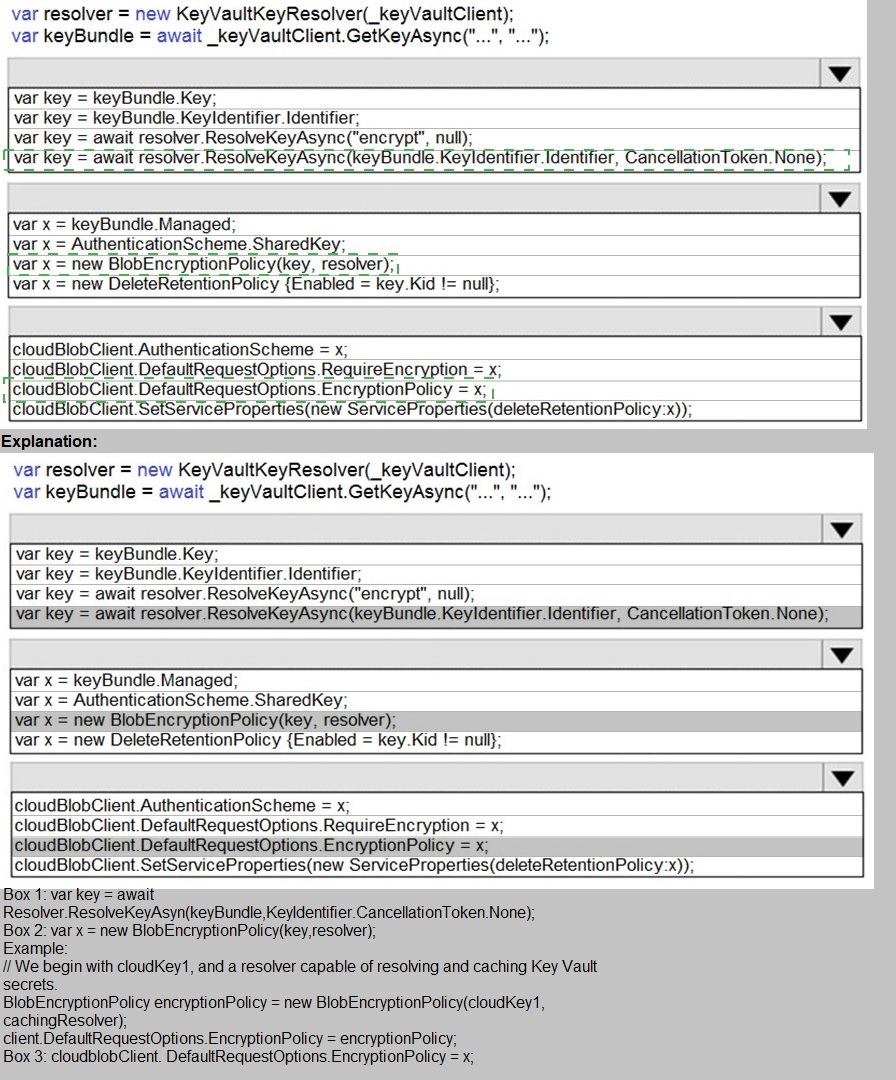 Scenario: All certificates and secrets used to secure data must be stored in Azure Key