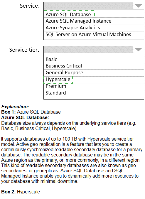 Which two possible storage solutions achieve this goal? Each correct answer presents a complete solution. NOTE: Each correct selection is worth one point.