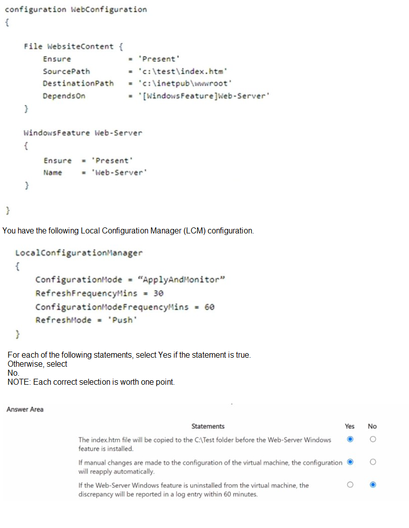 You have a virtual machine that runs Windows Server 2019 and is managed by using Desired State Configuration (DSC).