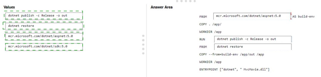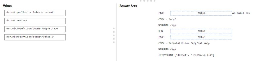 First blank (FROM Value AS build-env): mcr.microsoft.com/dotnet/sdk:5.0