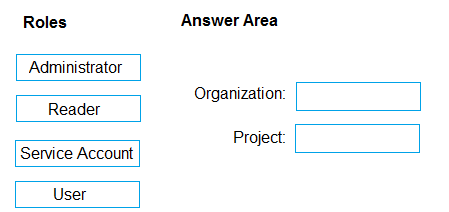 To answer, drag the appropriate role membership to the correct targets. Each role