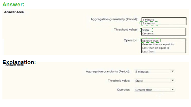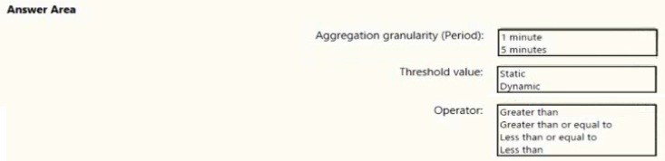 How should you configure the alert rule? To answer, select the appropriate options in the