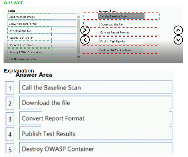 the list of tasks to the answer area and arrange them in the correct order.