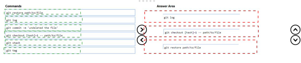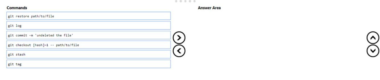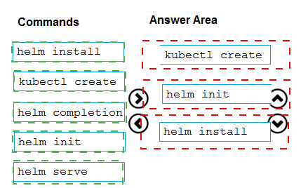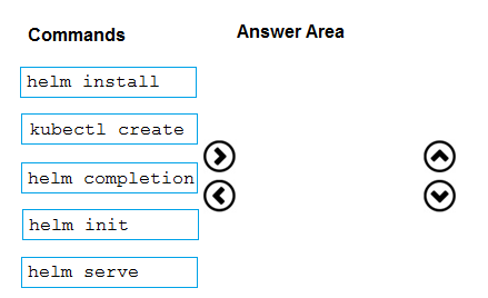 commands from the list of commands to the answer area and arrange them in the correct