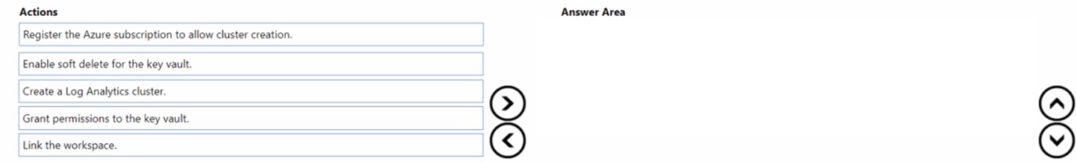 actions from the list of actions to the answer area and arrange them in the correct order.