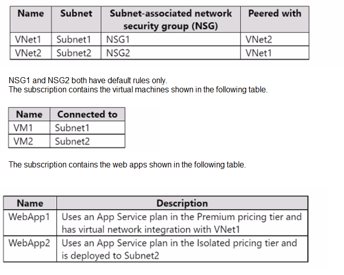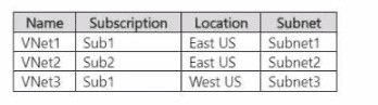 You have an Azure subscription that contains the virtual networks shown in the following