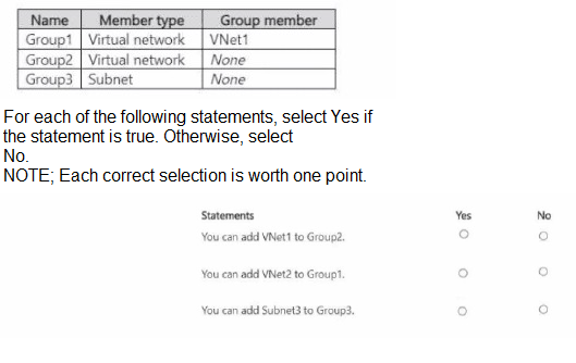 You have two Azure subscriptions named Sub1 and Sub2 that contain the virtual networks