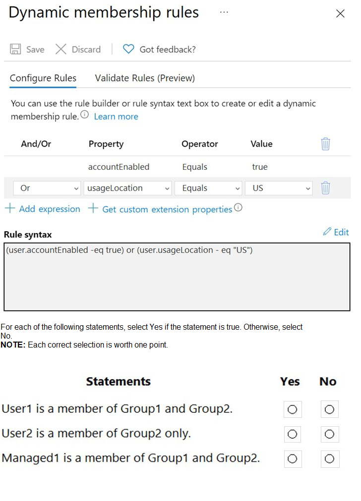 For each of the following statements, select Yes if the statement is true. Otherwise, select