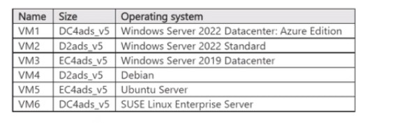 You plan to deploy the virtual machines shown in the following table.