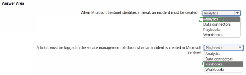 • A ticket must be logged in the service management platform when an incident is created in Microsoft Sentinel.