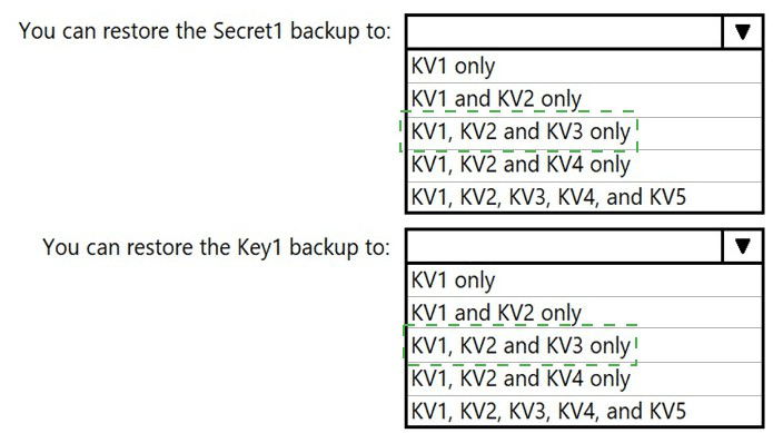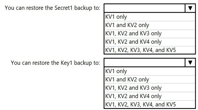 To which key vaults can you restore each backup? To answer, select the appropriate